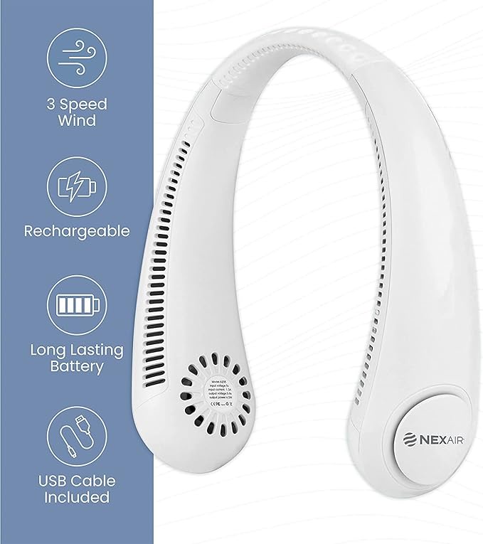 مع وزنها الخفيف (280 جرام) وسهولة الاستخدام، لن تشعر بالانزعاج أثناء ارتدائها. كما أن تصميمها الآمن بدون شفرات يجعلها مثالية للاستخدام في أي مكان. لا تفوت فرصة الاستمتاع بالهواء المنعش بصوت هادئ يقل عن 40 ديسيبل.